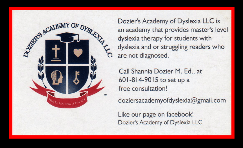 Shannia Dozier M. Ed. doziersacademyofdyslexia@gmail.com