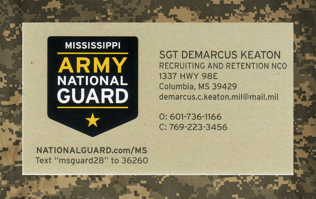 1337 Hwy 98E, Columbia, MS 39429 demarcus.c.keaton.mil@mail.mil